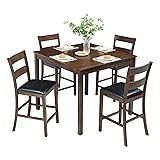 【Premium Elm Wood】Square dining tabletop and chair backrests feature high-quality elm wood veneer, while the table and chair legs are made of rubberwood, ensuring durability and water resistance 【Ergonomic Design】Chairs with curved backrests designed for comfort, cushioned seats with easy-to-clean black PU surfaces, and reinforced four-corner structures for even weight distribution 【Complete 5-Piece Dining Set】Includes one table and four chairs, perfect for seating 2-4 people, making it ideal for family dinners and gatherings with friends. The table holds up to 250 lbs, while each chair supports up to 275 lbs 【Versatile Walnut Finish】 Classic walnut color that complements various interior styles, including mid century, retro, farmhouse, and modern, and can also be used as a desk 【Easy Assembly】Each part is numbered for easy identification, with a detailed installation manual included. The entire set can be assembled in just 25 minutes, saving you time and effort