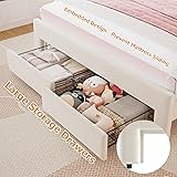 - Jocoevol Full Upholstered LED Bed Frame with 2 Storage Drawers and Adjustable Chic Double Wavy Headboard, Velvet Princess Platform Bed with Solid Wood Slat, No Box Spring Needed, Easy Assembly, Beige