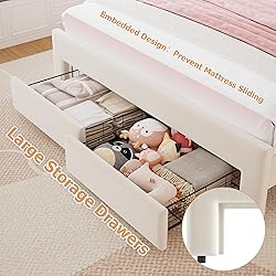 FULL BED FRAME WITH STORAGE DRAWER: This beige full bed frame maximizes space with two large, silent-glide drawer at the footboard for easy storage. The EVA-free barrier design keeps the drawer securely in place without making it hard to pull. With 6 inches of clearance on each side, this full bed frame girls offers extra space for storage and easy cleaning, plus the air circulation keeps the mattress fresher for longer CHARGING STATION & SIDE POCKETS:This princess bed offers not only comfortable upholstery and an elegant look but also added more convenience. USB and Type-C ports at the headboard keep your devices charged without needing to leave your comfortable bed. Two side pockets provide easy storage for glasses, combs, phones, remotes, and other small essentials, keeping everything within reach SMART RGB LIGHTS WITH MUSIC SYNC: This full bed frame for kids with built-in RGB LED headboard transforms your bedroom with over 16 million colors, 20+ light effects, and dynamic modes controlled by app or remote. Bold lights sync with music, setting the ideal vibe for relaxing, reading, or entertaining. From gentle nightlight for kids to vivid party colors, this velvet bed frame makes every moment magical with immersive ambiance CHARMING ADJUSTABLE HEADBOARD DESIGN: This full bed frame with double wavy headboard that combines elegance with whimsy. Upholstered in skin-friendly, soft sponge-padded material and wrapped in luxurious velvet fabric, this velvet bed frame offers exceptional comfort and visual appeal. The adjustable headboard height easily fits different mattress thicknesses, giving your child the support they need while reading or watching TV in bed. A charming blend of classic style and modern design for any girl's room STURDY & SILENT SUPPORT SYSTEM: Designed for durability and peace, this full bed frame features thickened wooden slats, three adjustable legs, and a heavy-duty metal structure that holds up to 1000lbs—no box spring needed. Silent strips lock slats in place, preventing shifting and minimizing noise for restful sleep. This strong and quiet velvet bed frame built to support your family every night EASY ASSEMBLY: This full bed frame with led lights is designed for straightforward assembly, including clear instructions, labeled parts, and all necessary tools. Precision-drilled holes make the process fast and effortless, letting you spend less time assembling and more time enjoying your new bed. If you have any questions before or after purchase, our dedicated support team is available to assist you and will respond within 24 hours