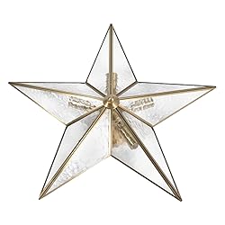 Stylish&Luxious Look: Featuring a star design that complements the luster of the gold electroplating finish, it presents a distinctive elegance and style, making it ideal for all decorative styles. It will add glamour to your room even during the day Wide Voltage Design: The wide voltage(110-220V) is designed to work well in areas with low or unstable voltage Robust and Durable: Made of high-quality glass and copper with a fine electroplating finish, it is resistant to corrosion, heat, and age, ensuring long life and good adaptability to the installation environment Custom Dimming: When used with dimmable bulbs and compatible dimming switches(not included), it can apply a dimming function Large Lighting Range: Five lamp holders allow light to illuminate your house from all angles, with a lighting range of 107.63-161.45ft2 for your daily needs