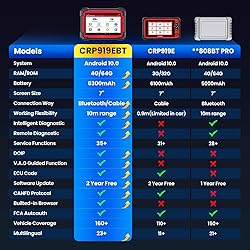 【WHY CRP919EBT STANDS OUT】 All-around upgraded of CRP919E, functions as X431 PRO3S+ V5.0 at a lower cost. Superior OE Functions: ✅Wireless Blutooth diagnostic ✅ ECU Code,✅ 35+ resets✅4000+ Active Tests✅ Full system diagnostics✅New protocols CAN FD & DoIP✅ FCA AutoAuth✅200+ Global brands(1996-2025)✅Level up Hardware: Android 10.0 OS ; Features a 6300mAh high-capacity battery ; 2.4GHz & 5GHz dual-band Wi-Fi ; 4+64GB storage; 7'' touch screen; 8MP Camera✅ 2 years of updates. All-in-one advanced OBD2 scanner. 【Advanced ECU Code, Customize OE-Settings】 The Launch X431 CRP919EBT automotive scanner includes powerful full-featured ECU Code functions such as Online Code (for VW/Audi/Skoda), Reset Adaptive Data, Match Replaced Components, and OEM Personalization & Feature Activation. Examples include:✅ Change interior light color✅ Toggle auto hold function✅ Customize dash kits✅ Activate auto side mirror folding✅ Auto Start-Stop Memory Function✅ Change speed limit. The PMI function (for Ford/Lincoln/Mazda) allows copy data into new modules. More options than rivals. ✅ 【Full Bi-Directional Control – 4000+ Smart Active Tests】 Empower your diagnostics with the LAUNCH X431 CRP919EBT’s full-featured bi-directional control — the same high-end capability found in professional shop-grade scanners. Send direct commands to ECUs to test and activate components like ABS, windows, mirrors, wipers, doors, and headlights. Instantly pinpoint faults without tearing down parts or relying on manual switches, cutting repair time and boosting your shop’s efficiency. ✅ 【35+ Hot Services & 100+ Advanced Functions in One Tool】 The LAUNCH X431 CRP919EBT gives you everything you need for professional maintenance — in one powerful device. Perform 35+ popular reset and relearn services such as Oil Reset, EPB, SAS Calibration, ABS Bleeding, Injector Coding, Throttle Adaptation, Power Balance, Idle Relearn, and HVAC Calibration. Dive deeper under “Diagnose > Brand > System > Special Function” to access 100+ additional functions for brand-specific systems — making repairs faster, easier, and more accurate. ✅ 【OE-Level All-System Diagnostics for 160+ Brands】 The LAUNCH X431 CRP919EBT provides complete, dealer-level system diagnostics for 160+ global vehicle makes, covering nearly all OBDII-compliant vehicles from 1996–2025. Access every major ECU — Engine, ABS, SRS (Airbag), Transmission, PCM, ECM, EPS, BCM, PDM, TPM, and more. Read and clear fault codes, view and record 8-in-1 live data streams, and analyze system performance in real time. Quickly locate hidden issues and ensure accurate with a detailed report, efficient repairs every time. 【FCA AutoAuth + CAN FD & DOIP, New added protocal】 The LAUNCH X431 CRP919EBT features the innovative wireless connector “DBSCar VII VCI” instead of a connection cable, allowing you to run diagnostics from anywhere around the vehicle, whether at the workbench or onsite.✅ Builted-in CANFD that support for 2020+ GM & Chrysler models.✅ DoIP support for Volvo, for Land Rover/Jaguar, and for BMW F/G chassis (requires additional adapter).✅ Integrated AutoAuth for diagnosing 2018+ FCA SGW-equipped cars without needing separate adapters. 【Choose us, No-worry Purchase】We prioritize user experience and strive to meet your expectations. Any questions, reach out 📩 ediagtools @ hotmail . com for assistance(Don't ask help for LAUNCH tech. USA). We are available 24/7/365 to support you and offer: 2-year updates, 5-year quality backup, lifetime technical support, and extended 60-day replace & return. Better, it can be used normally without update after 2 years. 【No Worry Purchase】 We prioritize your experience and strive to exceed your expectations. For any questions, reach out to us at 📩 ediagtools @ hotmail. com for assistance. We're available 24/7/365 and provide the following benefits:✅2-year updates✅5-year quality backup✅Lifetime technical support✅Extended 60-day replacement & return. Plus, the CRP919EBT continues to function optimally even after the 2-year update period—something you won’t find with other scanners. 🎁 FR--EE LAUNCH BST360 Battery Tester or EL-50448 TPMS Tool with. 【Value-Addded Features, A Big Plus !】 The CRP919EBT is designed to streamline your work and support business growth with innovative features: 👍Feedback: Personalized repair suggestions from LAUNCH’s certified professionals.👍Repair Info: Essential resources including operating skills, DTC help, an automotive technology handbook, and real-world repair cases.👍Efficiency Modules: Includes vehicle compatibility, user manual, Q&A, tablet settings, and more.👍Google Chrome Integration: Instant access to information for quick decision-making.👍24/7 Live Chat Support: In-app assistance for immediate help with any queries. 【99% Vehicles Worldwide+Add-on Features】There is no IP limited, and covers 160+ makes, like passenger cars, 12v pickup, hybrid vehicles and suvs produced from 1996-2025, providing a Dealership-Level diagnosis; 👍 Online repair center info includes operation tips/relevant cases and more; 👍 60-Days Return and Replacement; 👍 23+ Languages Multilingual; 👍 VSP600 Endoscope; 👍 BST360 Battery Tester; 👍 iTPMS/TSGUN TPMS Tool; 👍 AutoVIN&Auto SCAN; 👍 Built-in Google Browser; 👍 TeamViewer Diagnosis.