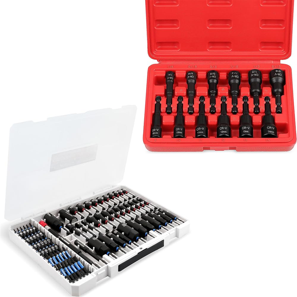 - ORGANIZED STORAGE - Sturdy, wear-resistant storage box keeps all nut drivers and bits secure and easy to access, with clearly engraved sizes for quick identification, making it perfect for professionals and DIY enthusiasts