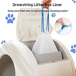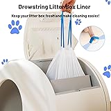 Rich in Quantity: This package contains 40 ultra strong opaque white bags. The cat litter box bags sized at 18" x 12.6". 1 Mil-thick litter box liner, each roll is tight and smooth. The cat litter bags made with recycled material. Easy to install and empty with no odor and no mess Convenient Drawstring Design: Our automatic cat litter box bags have convenient drawstring closures that prevent the litter from exposing, and the smell overflows. The drawstring design also helps to hold as much trash as possible. The drawstring allows for quick and effortless closure by simply pulling and tying it, eliminating the need for knots or complex tying methods, provide you with a comfortable use experience Quality Material: The self cleaning cat litter box bags are made of high quality plastic materials, which is sturdy and durable. It‘s offering excellent stretchability and characteristics such as puncture resistance, leak resistance, and tear resistance. They can effectively preventing garbage leakage, bringing more convenience for pet owners Hygiene & Convenience: Our automatic cat litter bags can contribute to improved sanitation and high level of cleanliness can be maintained during the waste disposal process.You don't need to worry about the bottom of the bag splitting and dumping rubbish onto trays and floors when you pull it out, or spending time cleaning up loose rubbish, and clumps of used rubbish around the bin Keep Clean: The litter box liner are designed for easy disposal. Once the bag is full, you can simply tie it up, seal it, and dispose of it in the trash without direct contact with the waste. Using a cat litter bag helps contain the litter within the automatic litter box self cleaning bag, preventing it from spreading around the litter box area, making changing the litter a breeze. This can help maintain a fresher and more pleasant environment in your home