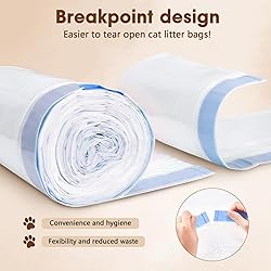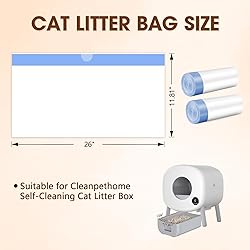 Rich in Quantity: This package contains 40 ultra strong opaque white bags. The cat litter box bags sized at 26" x 11.81" and offers a larger capacity of 15 liters. 1 Mil-thick litter box liner, each roll is tight and smooth. The cat litter bags made with recycled material. Easy to install and empty with no odor and no mess Convenient Drawstring Design: Our automatic cat litter box bags have convenient drawstring closures that prevent the litter from exposing, and the smell overflows. The drawstring design also helps to hold as much trash as possible. The drawstring allows for quick and effortless closure by simply pulling and tying it, eliminating the need for knots or complex tying methods, provide you with a comfortable use experience Quality Material: The self cleaning cat litter box bags are made of High quality plastic materials, which is sturdy and durable. It‘s offering excellent stretchability and characteristics such as puncture resistance, leak resistance, and tear resistance. They can effectively preventing garbage leakage, bringing more convenience for pet owners Hygiene & Convenience: Our automatic cat litter bags can contribute to improved sanitation and high level of cleanliness can be maintained during the waste disposal process.You don't need to worry about the bottom of the bag splitting and dumping rubbish onto trays and floors when you pull it out, or spending time cleaning up loose rubbish, and clumps of used rubbish around the bin Keep Clean: The litter box liner are designed for easy disposal. Once the bag is full, you can simply tie it up, seal it, and dispose of it in the trash without direct contact with the waste. Using a cat litter bag helps contain the litter within the automatic litter box self cleaning bag, preventing it from spreading around the litter box area, making changing the litter a breeze. This can help maintain a fresher and more pleasant environment in your home