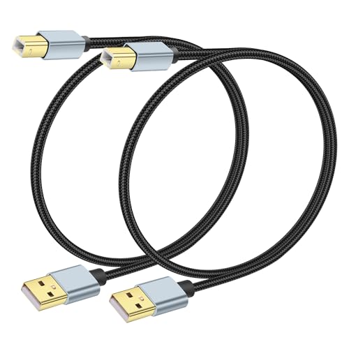 1FT USB A to USB B Printer Cable 2.0 Type A Male to B Male Cable High Speed USB 2.0 Printer Cord Suitable for Laptop,Printer,Scanner, Digital Pianos,MIDI Controller,Etc(2Pcs)