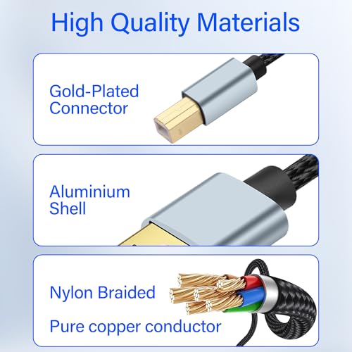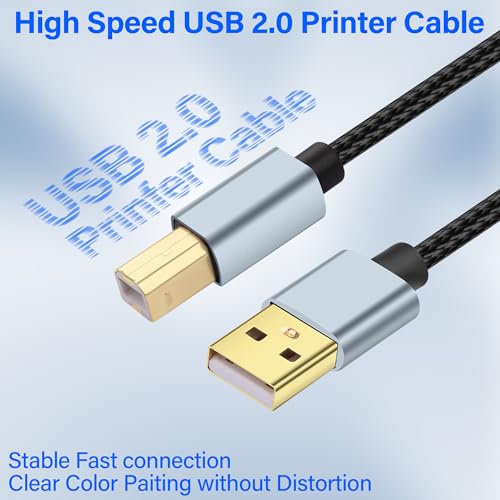 - 【Reliable and Durable】Gold-plated connector, oxidation resistance, corrosion resistance, aluminum housing, strong wear resistance. Nylon braided wire greatly improves the durability of USB print cables