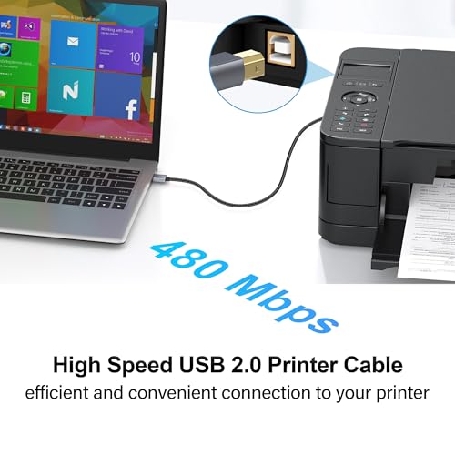 - 【USB Type A to Type B Printer Cable 】Used to connect USB- A devices to USB 2.0 Type-B devices and peripherals.USB 2.0 Type-B ports support: printers, multifunction printers, laser printers, thermal printers, scanners, barcode printers, digital pianos, MIDI controllers, electronic keyboards, etc.USB- A ports are suitable for: laptops, computers, tablets and more.