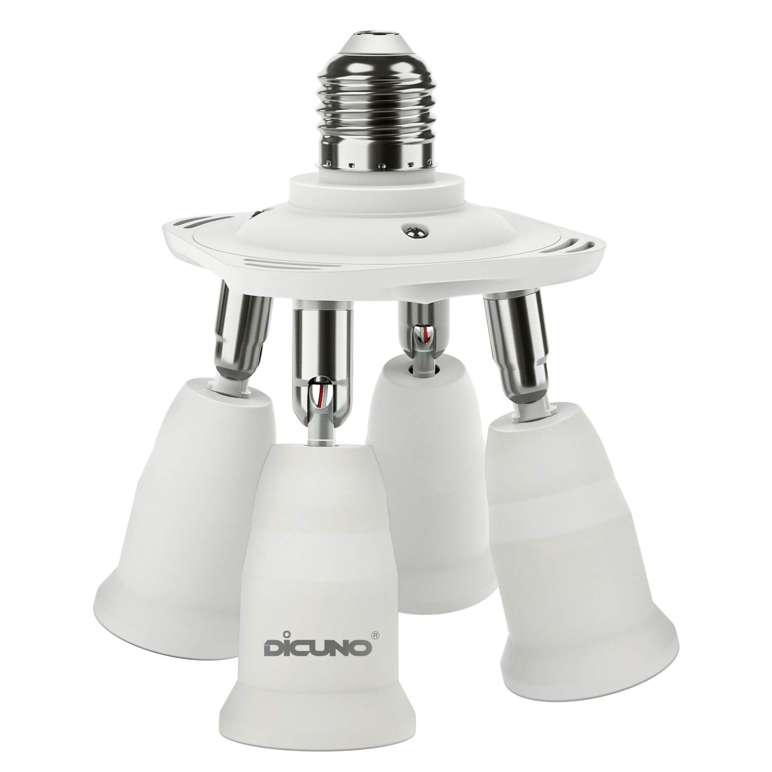 4 in 1 Light Socket Splitter Adapter, E26 E27 Standard Base LED Bulbs Converter, 360 Degrees Adjustable 180 Degree Bending, 4 Way Light Bulbs Socket Holder