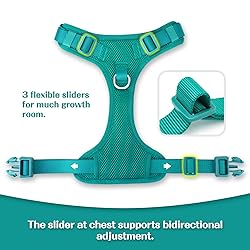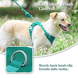Dual Metal D-Ring Clips Design : Front & Back Leash Attachments. Control pulling instantly with the Front D-ring (ideal for no-pull training). Switch to Back D-ring for casual walks or jogging. Secure 2-clip connection prevents escapes & evenly distributes pressure. No-choke, safe & comfy fit for all-day wear Customizable Fit for Growing Dogs: Upgraded with 3 adjustable sliders for all dogs’shapes. It allows precise sizing control and delivers a secure, balanced fit. Ideal for all-day comfort during walks, training, or play Soft & Airy for Stress-Free Comfort: Ultra-breathable mesh prevents overheating and chafing. Featherlight material reduces pressure on joints. It’s gentle on skin, making it perfect for long walks, hot weather, or dogs with sensitive skin. Comfort meets durability for all weather Escape-Proof Design for Security: Worried your dog might slip out during walks? This harness features a reinforced structure and snug chest fit that stays secure, even on pullers or excitable pups. No more sudden escapes—just peace of mind on every walk, hike, or car trip Easy On & Easy Off : This dog harness is easy to wear with 2 snap buckles. Just slip it over the head, connect the quick release snaps and off you go Easy On & Easy Off : This dog harness is easy to wear with 2 snap buckles. Just slip it over the head, connect the quick release snaps and off you go.