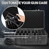 [Pre-Cut Custom Pistol Case for 6 Guns]: The HOSOCASE hard gun case features precision-cut foam inserts, perfectly designed to securely hold up to 6 pistols and 24 magazines. Simply insert your firearms and accessories into their designated slots for a precise, seamless fit, ensuring secure storage [Versatile Storage for Handguns and Accessories]: This hard gun case offers flexible storage options, able to securely hold 6 pistols with adjustable foam inserts. Designed to accommodate a range of handgun accessories such as gun cleaning kits, tactical slings, disassembly tools, timers, gloves, earmuffs, safety goggles,magazine loader and etc, it offers a customizable storage solution. Ideal for use as a pistol case, handgun case, or gun box for handguns, this case combines flexibility with value [Universal Fit for Most Handguns]: Designed to fit a wide variety of popular handguns under 9.4 inches in hypotenuse length, including Glock 17, Glock 19, Smith & Wesson M&P, Sig Sauer P226, Beretta 92, Ruger SR1911, Colt 1911, Springfield XD, and more. This versatile pistol case securely stores and organizes firearms, ensuring your valuable guns are kept safe and in place [ABS Construction & IP67 Rating]: Constructed with high-strength HMW Copolymer PP, this hard gun case offers military-grade durability. With an IP67 waterproof and dustproof rating, it ensures your firearms are securely protected in any environment. The heavy-duty pre-cut foam is non-abrasive, resistant to moisture and oil, keeping your handguns and accessories in perfect condition [TSA Approved for Safe Travel]: This TSA-approved gun case includes two padlock points that are compatible with TSA-approved locks, along with one-way hinge pins for added security. Whether you need a pistol case, handgun case, or gun carrying case, this gun box ensures secure and compliant transportation of your firearms [Air Travel Size & Weight]: Measuring 17.9 L * 13.4 W * 7.1 H inches and weighing 7.23 lbs, this hard gun case is the perfect travel companion. Ideal for air travel, it meets size and weight restrictions while keeping your guns and accessories safe and secure during transit. [100% Satisfaction Guarantee]: We stand behind the quality of our hard gun cases with a 365-day satisfaction guarantee. If you're not satisfied, please contact us, and we’ll resolve your concerns within 24 hours