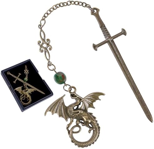- Unique Design: This fantasy themed bookmark features a striking antique green finish, with a detailed flying fourth wing dragon and a long, unique sword measuring 20 cm. It adds a touch of adventure to any book, giving readers the feeling of being a part of grand quests, perfect for fantasy genres lovers, mythical themes fans