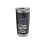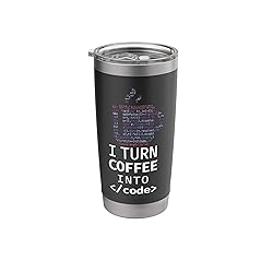 This Funny Programmer Coding Computer design reads i turn coffee into code. Perfect for a database administrator, software engineer or it professional who loves data & computer science and a database administrator, software engineer or it professional This Programmer Coding design features Javascript, Python and HTML or Java which is great for a network engineer, data nerd or computer engineer. Also a computer geek, data scientist, database admin or sysadmin working with php will like it Dual wall insulated: keeps beverages hot or cold Stainless Steel, BPA Free Leak proof lid with clear slider