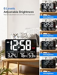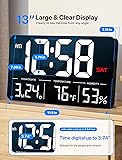 MASHI Digital Clock,13" Large Display Digital Wall Clock, Adjustable Brightness Calendar Clock with Day and Date,DST,Alarms,Humidity, Temperature for Desk, Wall Mounted, for Elderly