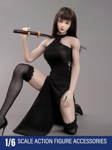 Fremego 1/6 Scale Female Clothes,Female Black Cheongsam High Waist Split Strap Dress Clothing for 12inch PH TBL JO Worldbox Action Figure