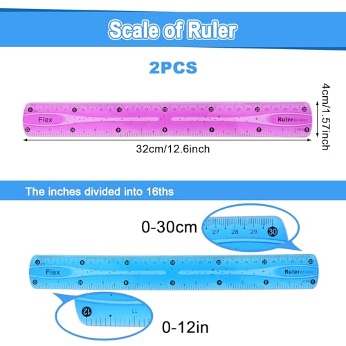 - Package Content: You will get 2pcs flexible rulers with 30 centimetre and 12 inch scales. There is enough of both to meet your needs. The gradient-coloured design will attract students' attention.