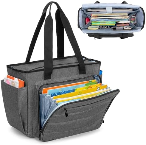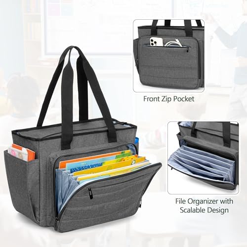 CURMIO Large Teacher Bag for Women, Portable Teacher Tote Bag with Accordion File Organizer Compartment and Laptop Sleeve, Gray(Patent Pending)