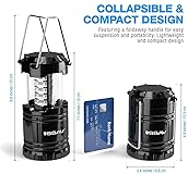 🌞BRIGHT & LASTING: Equipped with 30 crazy bright LEDs, this compact lantern cuts through 360 degrees of darkness on the stormiest, dimmest nights. Easily lights up the entire tent or room. 🌞COMPACT & LIGHTWEIGHT: Collapsible design that reduces or increases the light as you collapse or expand the lantern. When collapsed it's as small as your phone. Your new camping lantern easily fits in your backpack or emergency kit. 🌞WATERPROOF & ROBUST: Constructed with military grade ABS, your lantern is able to survive a 10-foot drop and being temporarily submerged under water. We hand-craft each LED lantern with strict quality control to give you the best gear you deserve. Do not equip yourself with inferior lanterns. 🌞LIFETIME WARRANTY: You can rest in knowing that this camping lantern is of utmost quality. Warranted for life, it is covered against defects in materials and workmanship for as long as you own the lanterns. CE / RoHS / EMC certified. 🌞REACH OUT: If you are not 100% satisfied, we are just an EMAIL away. We will do everything that we can to make you a HAPPY CUSTOMER. If you are 100% satisfied, please take us for a CUP OF COFFEE. Just kidding. An EMAIL will do.