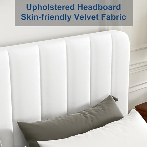 • 【Adjustable Velvet Headboard】The bed frame with headboard is made of top velvet fabric and filled with a high-density sponge for a soft and comfortable touch. It has three adjustable heights: 40.16/42.13/44.09, which allows you to use an 8-12 inches mattress.