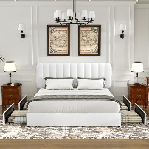• 【4 Large Capacity Drawers】The upholstered bed frame comes with four spacious storage drawers underneath, providing ample space for bed sheets, accessories and off-season clothing. Each drawer has four smooth wheels that make them easy to pull in and out.