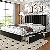 • 【Upholstered Design & Modern Style】This upholstered bed frame with storage is not only stylish but also functional. The rectangle-stitched surface headboard adds a sophisticated style to your home.