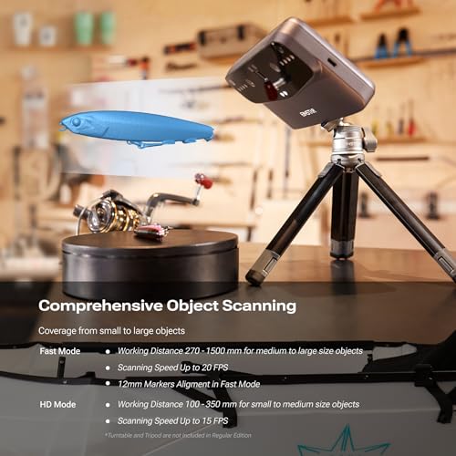 - 【Comprehensive Object Scanning】Fast Mode: working distance 270 - 1500 mm for medium to large size objects, scanning speed Up to 20 FPS, VCSEL for long range scanning provides smooth scanning under unlimited environment. HD Mode: working distance 100 - 350 mm for small to medium size objects, scanning Speed Up to 15 FPS, MEMS for short range scanning provides stable scanning for high detail data.