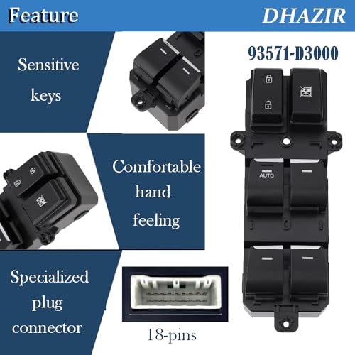 93571-D3000 Master Power Window Switch Front Driver Side 18Pins fit for Hyundai Tucson 2016 2017 2018 Replace 93570-D3000, 93571-D3040, 93571D3000, 93570-D3061, 93573-D3020 with Crowbar