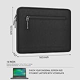 WIDE COMPATIBILITY: External dimensions: 14.5 x 10.5 x 1 inches, internal dimensions: 14 x 10 x 0.8 inches; Compatible with 14 inches Apple Macbook Pro, Macbook Air, Surface Book 3/2/1 13.5, Dell Latitude 14, Dell Inspiron 14, HP Chromebook 14, HP Stream 14, Lenovo IdeaPad 13/14, Acer Chromebook 14, ASUS VivoBook 14, ASUS ZenBook 14 and Most 14", CHUWI HeroBook Pro 14.1 inch, and fits more other similar size notebook. PREMIUM MATERIAL: This Laptop Sleeve surface made of high quality oxford, Which is waterproof and spill-resistant fabric material.There is no need to worry rainy days when you are out, The Carrying Bag will give your tablet good protection. Allows you to switch between a laptop briefcase handbag and laptop sleeve bag. EXTRA STORAGE SPACE: Except the main compartment for your laptop,Our laptop case also comes with a external pocket for additional storage such as charger, power adaptors, cables, Portable Mouse, Keys, Cards,Pens,Cell Phone and other accessories etc. SHOCKPROOF PROTECTION: This laptop sleeve has soft, thick and velvet lining, which buffer shake and impact, protect your notebook avoiding accidental hit and scratches. with a fully lined interior and interior border helps shield your device from damage, which provides excellent overall protection. which make it so convenient for daily use and traveling wherever you go. EASY TO CARRY: Double-way zipper closure allows you to take laptop easily. Slim and lightweight makes it easier to slide into your tote bag, briefcase, backpack or other bag. Top-loading zipper on the sleeve glides smoothly and allows convenient access to your laptop computer.