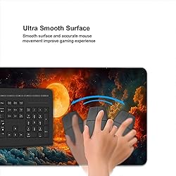 【Fantasy Scenery Extended Large Mouse Pad Size】Upgrade your workspace with our ultimate extended large mouse pad. With a size of 800 x 300 x 3mm (31.5 x 11.8 x 0.11inch), it offers ample space to accommodate your computer, laptop, keyboard, and other desk items, while ensuring plenty of room for unrestricted mouse movements. The bright and anti-fade illustration on the surface adds personality and vibrancy to your desktop, effortlessly matching any style of room, office, home, or desk. 【High Qulity Workmanship and Materials】Our desk mat designed with superfine fiber braided material and high elasticity natural rubber material, durable quality stands up to years of use. It will improves your productivity and gaming experience but also adds a touch of sophistication to your desk. Say goodbye to messy and stained mouse pads, and say hello to a fresh and new-looking workspace. 【Ultra Smooth Surface】This large gaming mouse pad is made of high-quality polyester fabric with a soft and smooth surface that is not easily deformed. The mouse can slide easily on its surface. The smooth surface and accurate mouse movement can improve your gaming experience and meet your needs for gaming and office work 【Non-Slip Rubber Base】The bottom of this extended gaming mousepad is made of soft and dense shading natural rubber, with a 3mm thickened design and strong adhesion. It can firmly grip the desktop for steady control and effectively prevent the movement of the mouse and keyboard 【Perfect Gift】Add Color, Style And Comfort Into Your Deskspace And Keep Your Desk Protected. Great Gift Idea For Friends, Familiy, Classmate And Workmates.