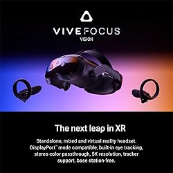 - Before stepping into the future of immersive technology with the HTC VIVE Focus Vision VR Headset with Controllers, Business Edition. This hybrid standalone mixed-reality headset is engineered for exceptional performance and unparalleled comfort, making it a top choice for businesses seeking cutting-edge VR solutions. The VIVE Focus Vision boasts an impressive 5K resolution, delivering 2448 x 2448 pixels per eye, complemented by a 120-degree field of view and a smooth 90 Hz refresh rate. This ensures a visually stunning experience that captivates users. Built-in eye and hand tracking enhance interactivity, offering precision and lifelike avatar movements for improved VR training and collaboration. The headset's foveated rendering technology optimizes graphic fidelity by reducing GPU workload, ensuring seamless performance.Setting up the VIVE Focus Vision is a breeze, thanks to its inside-out tracking system that captures movements with submillimeter accuracy, eliminating the need for external base stations. The auto-IPD adjustment feature aligns the lenses with the user's pupils, providing a clear and comfortable viewing experience for multiple users. Designed for high-traffic simulation environments, this headset features an ergonomic, reinforced build with a magnesium alloy frame and a metal loop for securing the top strap. Its hot-swappable battery allows for uninterrupted use, while the active cooling system ensures optimal temperature control, enh