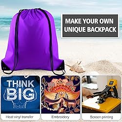 Package included: 6* purple drawstring bags. Enough quantity for you, also can share them with your families and friends Drawstring bag measures 34cm*40cm/13.4"*15.7". Great size to carry books, clothing, umbrella, a pair of shoes, etc. High quality, drawstring backpack is made of 210D polyester, PU leather reinforced corner. Lightweight and sturdy. Please wash it by hand in cold water, can be reused. Reduce plastic waste by reusing reusable cloth bags The purple drawstring bags have no letters or patterns. You can print favorite pattern or words on it to make a unique bag. Perfect gifts for your friends or children The string bag is perfect for sports, gym, yoga, picnic, camping, travel and more. Note: We will check the quantity strictly before delivery, but please do contact us if there is still a problem of less delivery