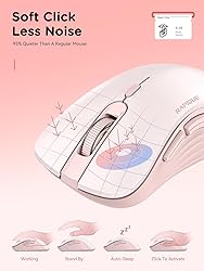 Elegant Color Palette: The R-09 Bluetooth Wireless Mouse debuts a stunning new design with a deep pink frame, soft pink buttons, and a serrated pink rubber scroll wheel. This charming and stylish color scheme elevates any workspace with a blend of modern sophistication and playful elegance Dual Bluetooth & USB Wireless Connectivity: Experience seamless multitasking with the RAPIQUE Wireless Mouse, featuring dual Bluetooth and USB options. Effortlessly switch between multiple devices, such as laptops, iPads, PCs, and MacBooks, to enhance your productivity Ergonomic Design for Comfort: Crafted for all-day comfort, the ergonomic shape of the R-09 Wireless Mouse ensures a secure and fatigue-free grip. It's perfect for extended work sessions, minimizing hand strain while maximizing productivity Quiet Clicks for Peaceful Work: Focus on your tasks without interruptions, thanks to our advanced silent-clicking technology. Whether you're at home, in a library, or in the office, this mouse keeps your workspace distraction-free Low Power Consumption & Wide Compatibility: Powered by a single AA battery, the R-09 offers exceptional energy efficiency for prolonged use. Its broad compatibility with various operating systems—ranging from laptops and MacBooks to Chromebooks and iPads—makes it a reliable and versatile choice for any setup This comfortable, functional, stylish, and elegant pink laptop mouse is very suitable for using work/travel/games. It is also an exquisite present to family, friends, kids, classmates, or colleagues Note:1. 2.4Ghz USB mode is plug and play; 2. In Bluetooth mode, long press the mode switch button to pair with Bluetooth