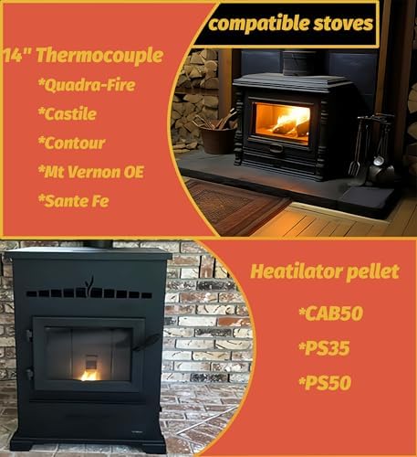 Product Summary: Our PH-20154 is a premium quality thermocouple replacement for Quadra-Fire and Heatilator Eco-Choice pellet stove models. This thermocouple measures 14″ in length . The Thermocouple is the device that monitors the fire after start-up. Once it reaches temperature the thermocouple allows the stove to start feeding on it's own in normal operation mode. If your stove goes out after the initial start-up cycle, more than likely the thermocouple needs to be replaced. *Note!!!: This does not fit the Mt. Vernon AE or CB1200, CB1200I. Fit For Models: ~ Original Mt. Vernon ~ Contour ~ Castile ~ Castile Fireplace Insert ~ Santa Fe B ~ Santa Fe ~ Santa Fe Fireplace Insert Fits Heatilator Eco-Choice Models: ~ PS35 ~ PS50 ~ Cab50 This thermocouple will be a direct fit for Heatilator Eco-Choice CAB50, PS35, and PS50 models in addition to the Quadra-Fire Castile Freestanding, Castile Insert, Contour, Mt Vernon OE, Santa Fe, and Santa Fe Insert models. Heatilator Pellet CAB50 PS35 PS50 Quadra-Fire Pellet Castile Freestanding Castile Insert Contour Mt Vernon OE Santa Fe Santa Fe Insert