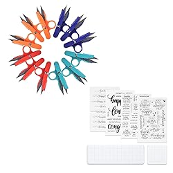 - UCEC 12 Pack Thread Snips, Crochet Scissors Yarn Scissors Small Mini Scissors Fabric Scissors Embroidery, 4 PCS Rubber Clear Stamps Set Transparent Postage Silicone Stamps, 2 PCS Acrylic Stamp Block Tools with Grid Lines