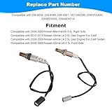 Interchange OE Number: Compatible with 234-9038, 234-4380, 234-4381, 1821382Z00, 226931AA0A, 22690ED000, 226A0EN21A Package Included: 2 X Oxygen Sensors Benefits of Replacing Old Oxygen sensors: Oxygen sensor can improve engine performance, Prevent rough idle and engine misfires, Saves fuel and reduces air pollutant emissions, Extend expensive catalytic converter life. Fitment: JDMON Oxygen O2 sensor compatible with 2008-2009 Nissan Altima L4 2.5L, 3.5L, compatible with 2009-2009 Nissan Maxima V6 3.5L Right Side, for more models, please refer to the description page Warm Tips: Please check the description or interchangeable part numbers to confirm the compatibility before purchasing. Please check your oxygen sensor position plug wire length. Recommendation and Services: The installation of auto parts is a very professional work, we recommend that you install it under the guidance of professionals. If you have any questions, please contact us, we will reply you as soon as possible.