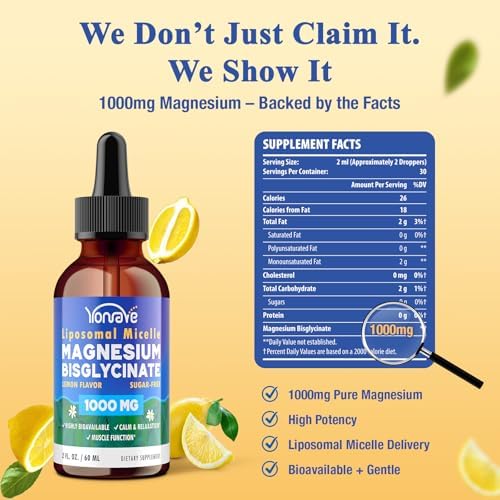 - High-Dose Chelated Formula: Delivers 1000mg of Magnesium Bisglycinate per serving—one of the most concentrated liquid magnesium options available. This high-strength chelated form effectively corrects magnesium deficiency— muscle, sleep, heart and optimal magnesium levels.