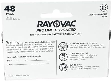 Rayovac Proline Advanced Hearing Aid Batteries | Size 312 | World's Longest Lasting Battery | Child-Resistant Packaging (48)