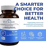 Advanced high-potency L-Methylfolate formula for superior absorption and effectiveness – Each capsule provides a precise 7.5 mg dose of L-Methylfolate, the bioactive and highly absorbable form of folate, ensuring optimal nutritional support for cognitive function, mood balance, and cardiovascular health. Supports brain function, mental clarity, and overall well-being – L-Methylfolate plays a vital role in cognitive processes, helping to maintain focus, clarity, and overall mental performance. Designed to support a healthy mood and well-balanced lifestyle, this supplement is ideal for those looking to optimize their daily wellness naturally. Promotes cardiovascular health by supporting homocysteine metabolism and heart function – L-Methylfolate helps regulate homocysteine levels, which are linked to cardiovascular wellness. By aiding methylation processes, it supports healthy circulation, blood vessel integrity, and overall heart health. Fast-acting absorption for enhanced bioavailability and superior efficacy – Unlike synthetic folic acid, which requires conversion in the liver, L-Methylfolate is the ready-to-use, active form that the body can absorb and utilize efficiently, making it an ideal choice for those with MTHFR gene mutations. Smaller, easy-to-swallow vegetarian capsules designed for effortless daily intake – VitaJax uses a #4 capsule size, significantly smaller than typical #0 capsules used in many supplements, making it more comfortable to swallow without compromising potency, bioavailability, or overall effectiveness. Vegan-friendly, non-GMO, and free from common allergens for a clean, pure formula – Crafted with high-quality plant-based capsules and free from gluten, dairy, soy, artificial additives, or preservatives. Designed for individuals following vegan, vegetarian, or allergen-conscious diets, ensuring a safe and effective supplement choice. Enhances natural energy production and metabolic efficiency for everyday vitality – L-Methylfolate plays a vital role in converting nutrients into usable energy, supporting cellular function, and reducing feelings of fatigue. Ideal for individuals looking for a natural way to maintain energy levels throughout the day.
