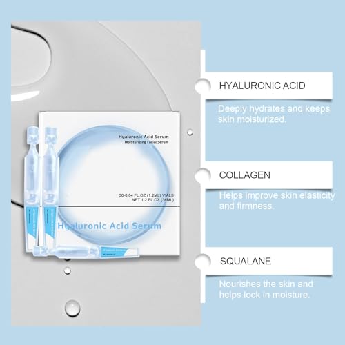 - Intensive Hydration:Our Ultra-Hydrating 3% Hyaluronic Acid Serum provides intense hydration to improve dryness and dehydration. With 1.2ml x 30 ampoules per box, it replenishes the skin's moisture barrier and effectively reduces the appearance of wrinkles.