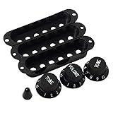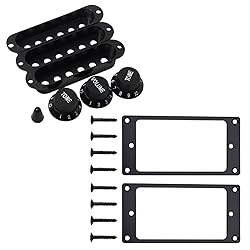 The pickup cover compatible with Strat guitar pickup cover fender electric guitars,This pickup cover just compatible with SSS guitar.Material:Plastic; Polepiece Spacing: 50mm; Each hole spacing:10mm. Includes 3pcs pickup covers, 1 volume and 2 tone knobs and 1 switch tip.Knob: About 6mm knurled inner diameter.Color: Black,please check the size before buying. These Pickup Rings in black color are wonderful DIY parts for guitarists or luthiers.Compatible with electric guitar or other similar guitar parts,which are used to replace your old pickup rings. It's so easy for you to install these two mounting rings with screws.(included 8PCS). Metal construction, stable and sturdy and you needn't worry about deforming. Thickness:2mm(Check the second picture for other detailed size info) Outer Frame Dimension(LxW):Approx.92x46mm/3.6 x 1.8in;Inner Frame Dimension(LxW):Approx.70x39mm/2.7 x 1.5in