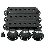 Guitar 3 Single Coil Pickup Cover 2 Tone Knobs 1 Volume Knobs Switch tip,Black & Metal Flat Humbucker Cover Electric Guitar Pickup Frame Mounting Ring with Screws