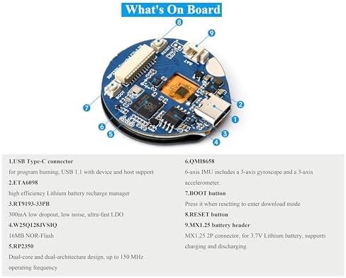 - This is RP2350 MCU Board, With 1.28inch Round Touch LCD, capacitive touch LCD, 240×240 pixels, supports 65K color for clear color picture display. RP2350 microcontroller chip is Original from United Kingdom. (This version is with CNC Metal Case)