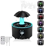 CREATIVE ROTATING UMBRELLA DIFFUSER: Taking inspiration from a rainy day, it simulates raindrops falling down the side of an umbrella and is designed to recycle underneath without splashing. The mist will spray out from the top of the umbrella. The aromatherapy diffuser bring a serene atmosphere to your home and office.This is a home office essentials. 7 COLOR LED NIGHT LIGHT: 7 colors LED lights turns the air humidifier into a bedside ambient light, the light has two modes, fixed color and gradient.It can be switched by remote control and buttons, with a gentle rotating track that won't disturb your sleep. Perfect for use as a humidifiers for bedroom baby. HUMIDIFIER LARGE ROOM: The scent diffusers for home adopts 300ml large opening water tank, which is more convenient for refilling and cleaning. The atomization volume is 10-30mL/H, fine atomization, filling the water tank can be used for a long time, drop in essential oils, the aroma can easily fill the whole space.This is a humidifier with essential oil diffuser. INTELLIGENT TIMING AND AUTO SHUT-OFF: This tabletop humidifier offers 2 hours/4 hours/8 hours timer settings, and is also equipped with an anti-dry burn function that automatically shuts off when the water level is low. The auto shut-off feature ensures safety and peace of mind when going to sleep and out of the house. Remote control, no need to get up. APPLICABLE TO MULTIPLE SCENARIOS: Rain drop humidifier humidifier, small air diffuser, night light, 3-in-1, its versatility makes it ideal for home air humidifier, bedroom diffuser, bedside night light, office humidifier. Whether you are resting, reading, office, yoga, it is very suitable and easy to carry.