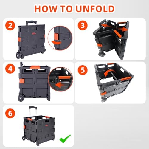 JJRING Folding Rolling Crate, Portable Utility Cart, Collapsible Handcart Shopping Trolley, Rolling Crate with Wheels for Teacher, Grocery, Office and Luggage