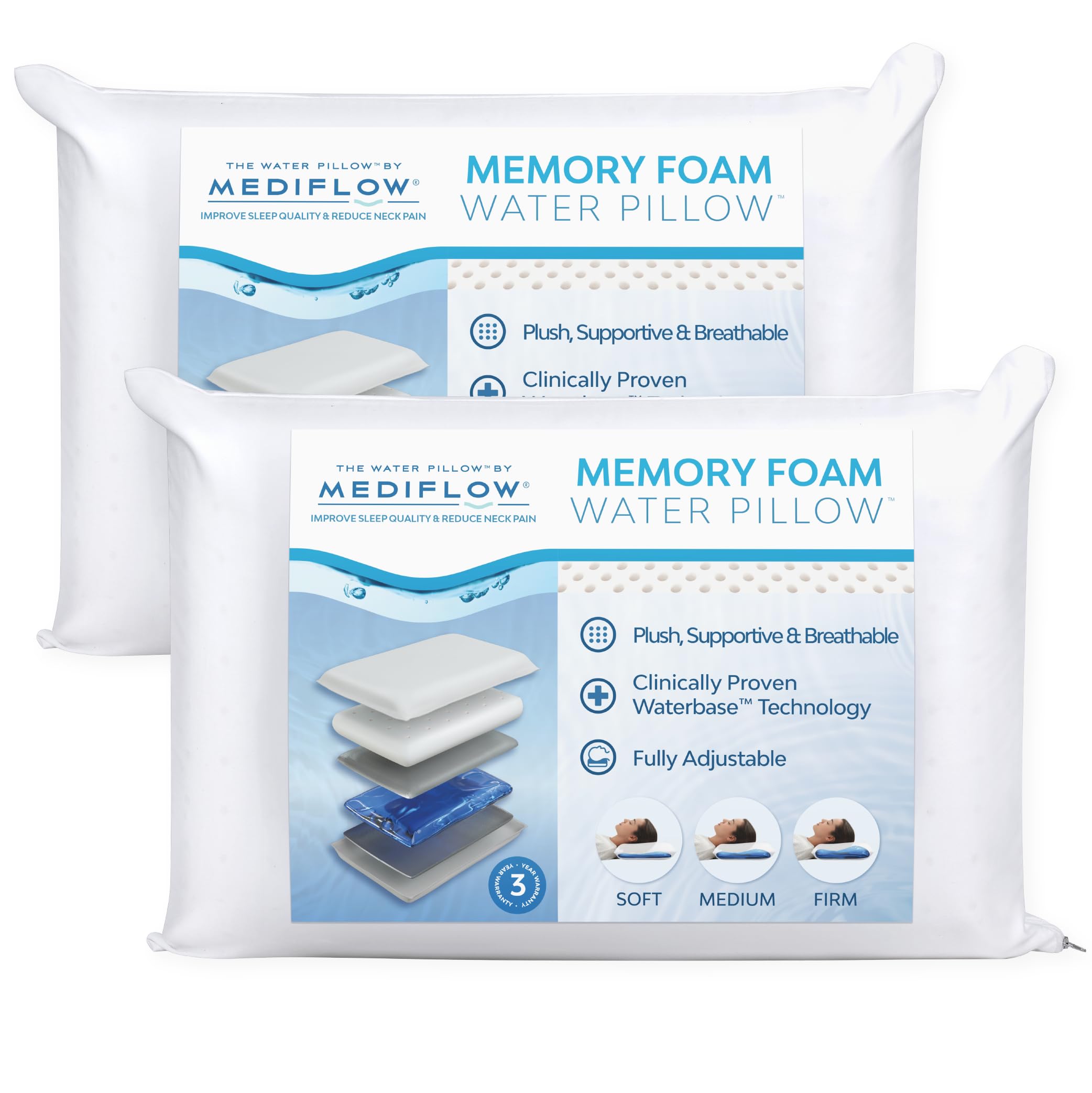 - PREMIUM BED PILLOWS TO ENHANCE SLEEP QUALITY: Help guests or clients wake up refreshed with the Mediflow Original Memory Foam Water Pillow Business Pack. Each pillow conforms to the shape of the head and neck, relieving discomfort and supporting a restful, rejuvenating night’s sleep, ideal for professional and hospitality use.