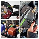 Test any battery with a versatile battery voltage reader designed to integrate perfectly with your Leatherman multitool. This compact device fits into the bit holder of your Leatherman, with a keychain hole for convenient portability. Simply place the voltage meter into the flat bit receiver of your Leatherman tool and complete the circuit using the other end to test the health of any battery. Can be used on anything conductive; with or without Leatherman tool. Accurately read DC voltages ranging from 2.5VDC to 30VDC. (Does not read voltages on AA or AAA batteries, which are 1.5V.) No additional battery required. The light indicator provides a clear voltage reading with color-coded blinks: Green for every 10V, Yellow for every 1V, and Red for every 0.1V. Use at your own risk. Always wear protective gear, especially when testing large capacity batteries. Do not use the voltage meter when wet.