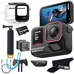 Flagship 1/1.3" 50MP Sensor and 5nm AI Chip: Armed with a larger, premium sensor, Ace Pro 2 allows you to capture up to 8K30 resolution and features an automatic HDR mode. Ace Pro 2 is also the first action camera to incorporate a powerful 5nm AI chip, maximizing the sensor's capabilities and amplifying low light image brightness with reduced noise. Wide-Angle Leica SUMMARIT lens: Leica brings its legendary expertise in optical design and state-of-the-art imaging to Ace Pro 2, delivering spectacular visuals to any given moment. Unbeatable Image Quality by Day and Night: Record 4K60fps slow-mo and utilize Active HDR for more vibrant shots. The new PureVideo mode redefines low light shooting in an action camera, bringing innovative AI noise reduction and improved dynamic range. Flip Touchscreen, 0.7" Front Screen and back 2.5" touchscreen, have more control with the huge flip touchscreen. This super flexible setup makes it easy to preview your shots from any angle. Easy Shooting and Sharing: Seamlessly switch between accessories with the magnetic mounting system. Ace Pro also supports easy-to-use features such as Pause Recording, Gesture Control, Clarity Zoom and more. The built-in AI automatically generates highlights for you, pushing a ready-to-share video to you via the Insta360 app. Engineered for Adventure: Keep even the most intense bumps and shakes at bay with leading FlowState Stabilization. Ace Pro is waterproof to 39ft (12m) and comfortable in temperatures as low as -20°C (-4°F) for reliable winter sports shooting. Buying from EVO Gimbals supports a Small Oregon Business! Customer Service is based in Bend, OR, replies in 24 hours