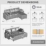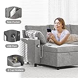 - JFHID Sleeper Sofa Couch with Pullout Bed, 85 Inch Sofa Bed Pull Out Couch with Storage Chaise, L-Shaped Convertible Couches with USB Charging Ports&Cup Holders for Living Room-Faux Leather, Grey