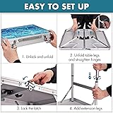 Portable & Foldable Design: This small folding camping table is designed with convenience and portability in mind. It easily folds in half and includes a built-in carry handle, making it a truly lightweight folding table for easy transport. Whether you're heading to a campsite, beach, picnic, or BBQ, this portable folding table is your go-to outdoor table for all kinds of on-the-go adventures Sturdy Aluminum Frame: Crafted with a high-quality aluminum frame, this aluminum folding table offers a stable and reliable structure with a load capacity of up to 100 lbs. The aluminum-plastic tabletop is smooth, moisture-resistant, and easy to clean—perfect for any camping table setup in rugged outdoor conditions Adjustable Height for Versatility: Enjoy two adjustable height settings (10.6" and 22.1") to suit various activities. Whether you’re having a ground picnic or need a raised beach table for meal prep or card games, this camping table adapts to your needs—ideal for both kids and adults in diverse environments Multi-Use for Various Occasions: This isn’t just a folding camping table—it’s a multi-functional solution. Use it as a BBQ side table, tailgate table, picnic table, or even as a compact indoor desk. Great for crafting, gaming, or extra dining space, this folding table fits any lifestyle, indoors or out Quick Setup & Compact Storage: No tools required—this lightweight folding table sets up in seconds. Just unfold the legs, lock them in place, and you’re ready. When not in use, fold it into a compact size for easy storage in your car, RV, or home closet. Weighing only 5.7 lbs, it's the perfect outdoor table companion for travel and tight storage spaces