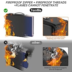 [Every detail is fireproof] The full coverage of high-quality fireproof materials, fireproof zippers and fireproof wires prevents flames from penetrating.Effectively protect your valuable documents from fire damage [More durable hard shell] Add high-quality aluminum foil and multi-layer fireproof materials inside, It has been passed by SGS testing (UL94 certification), protect important files from and damage. The hard shell is not easy to deform, not afraid of extrusion and wear, and is durable [File safe and not be leaked] Confidentiality-level password lock, three-digit password design, keyless design, tamper-proof. Effectively protect your contracts, cards, certificates, meeting materials, passports and other important documents from being peeped [Large capacity design]Tamfile fireproof safe document box adopts a detachable design, and the large capacity can fully meet your storage needs (16*card slots, 4*U Disk pockets, 2*zippered mesh pockets, 3*medium mesh pockets and 1*large space)Convenient for storing and classifying various documents or other important items [Complete Customer Support]: Tamfile is committed to researching fireproof products, just to bring you good products and excellent customer experience. If you have any questions, please contact us and we will try our best to solve your problem!