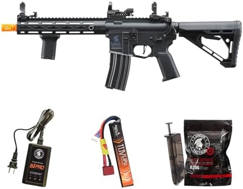 Lancer Tactical Gen 3 Hellion MLOK 10" Delta Stock Airsoft Rifle Lipo Battery Pack with Red Dot Sight & Grip